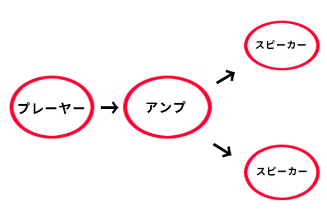 大きく分けて3つの機器に分けられます。プレーヤー→アンプ→スピーカーと分けられます。