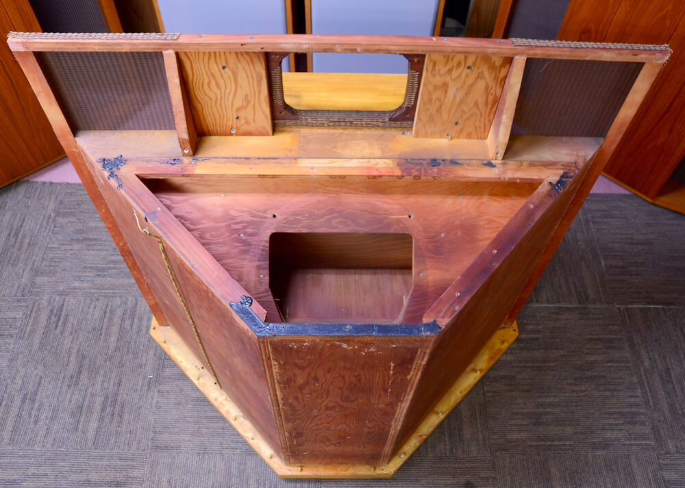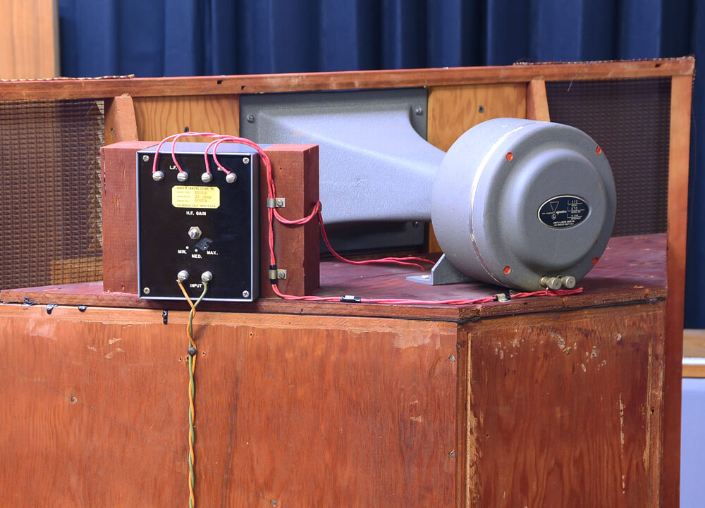 ステレオサウンド誌を見ていて気付いたのですが、高域用音響レンズが取り付けられたバッフルが、一段前に出ています。1957年頃のハーツフィールドからはバッフルはフラットになっていますので若干の設計変更などがなされたようです。