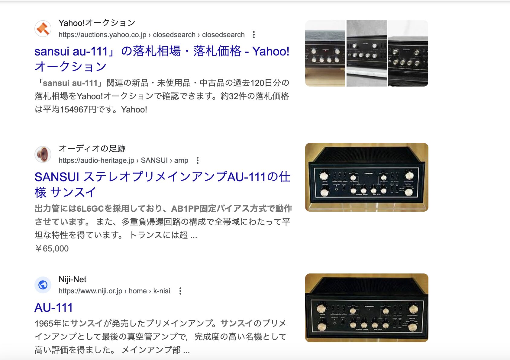 お持ちのオーディオの価値を知るには検索をすること