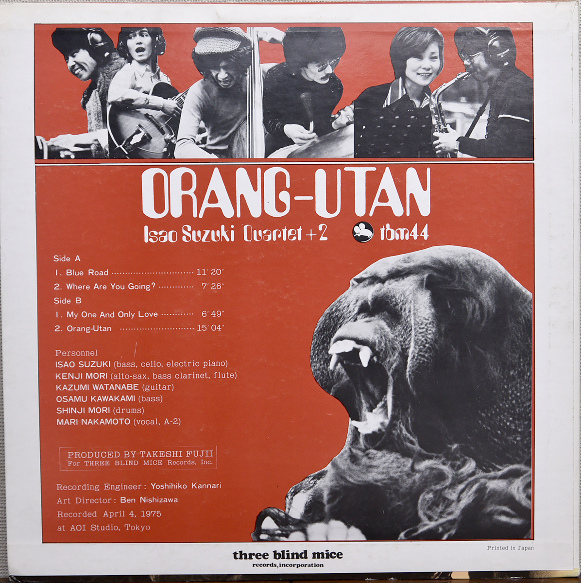 TBM中期を代表する人気作、鈴木勲カルテット+2による「オランウータン」。鈴木勲を中心に、渡辺香津美、森剣治らが参加した豪華編成で、モーダル〜フュージョン感覚を取り入れた自由度の高いサウンドが展開される名盤です。タイトル曲「オランウータン」をはじめ、構成力と演奏力の高さが際立つ内容で、和ジャズ屈指の評価を受ける一枚です。近年は海外からの需要も高く、安定した人気を誇ります。