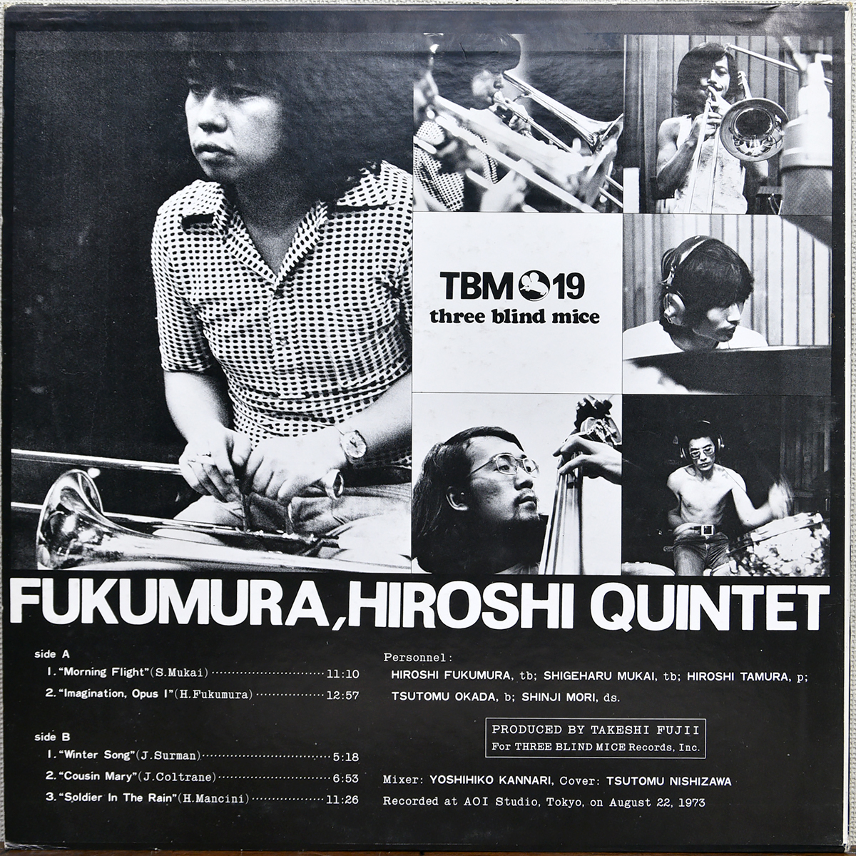 THREE BLIND MICE初期を代表する名盤のひとつ、福村博五重奏団によるリーダー作。福村博の重厚で伸びやかなトロンボーンを軸に、向井滋春を迎えた2トロンボーン編成が大きな特徴となっています。録音・演奏ともに評価が高く、TBMらしいクリアで立体感のあるサウンドも魅力。和ジャズ定番タイトルとして現在も人気の高い一枚です。